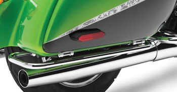 • Chrome plated steel tubing trim adds extra cruiser style to the saddlebags