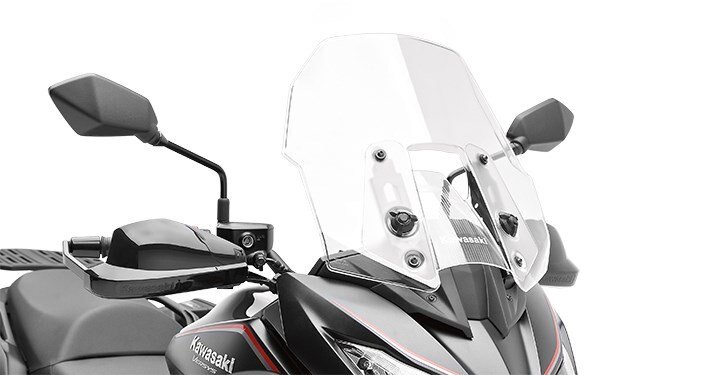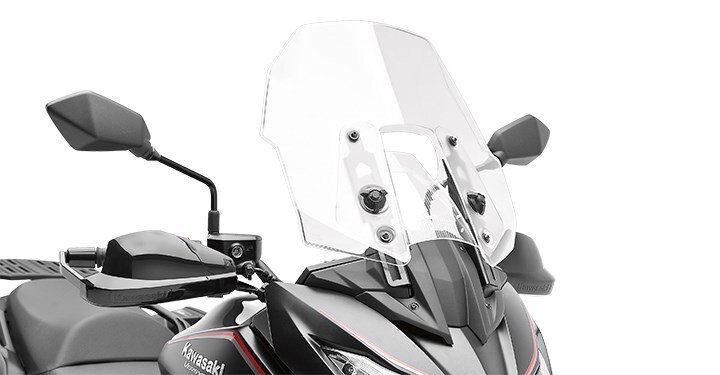 • Clear touring screen is 150 mm (6 inches) wider and 80 mm (3 inches) taller than the stock windshield